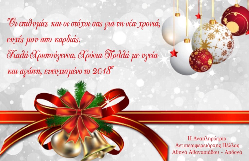 Ευχετήρια κάρτα Αν. Αντιπεριφερειάρχη Πέλλας Αθηνάς Αθανασιάδου – Αηδονά