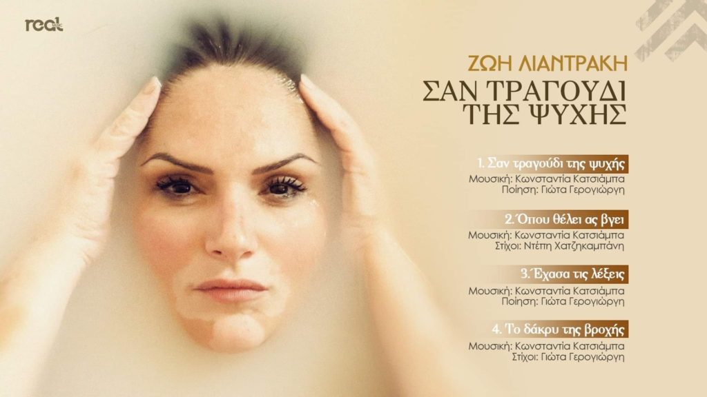 H Ζωή Λιαντράκη παρουσιάζει το νέο της τραγούδι με τίτλο ” Σαν τραγούδι της ψυχής” ,το οποίο περιλαμβάνεται στο digital CD single που περιέχει και τρία παλαιότερά της κομμάτια. Κυκλοφορεί ψηφιακά από την Real music και είναι διαθέσιμο σε όλες τις ψηφιακές πλατφόρμες. Η ερμηνεύτρια Ζωή Λιαντράκη μας εκπλήσσει πάντα ευχάριστα χτίζοντας μία αξιοπρόσεκτη διαδρομή που την φέρνουν με γοργά βήματα στις πρώτες γραμμές της τέχνης της. Η ίδια μας έχει δώσει σημαντικά δείγματα των ερμηνευτικών της χαρισμάτων με τραγούδια που έχουν αγαπηθεί από το κοινό και τους ραδιοφωνικούς παραγωγούς.