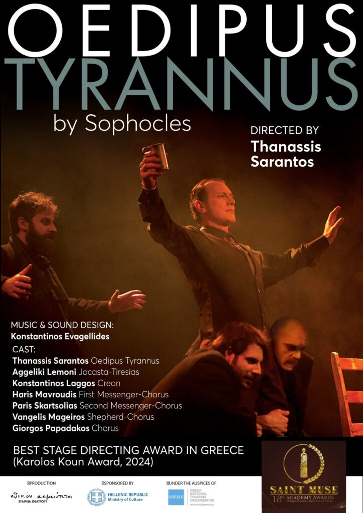 Η βραβευμένη παράσταση «Οιδίπους Τύραννος» του Σοφοκλή σε σκηνοθεσία-ερμηνεία Θανάση Σαράντου θα παρουσιαστεί στις 22 Μαΐου στις 18 o Διεθνές Διαγωνιστικό Φεστιβάλ Θεάτρου Saint Muse στο Ulaanbaatar της Μογγολίας .