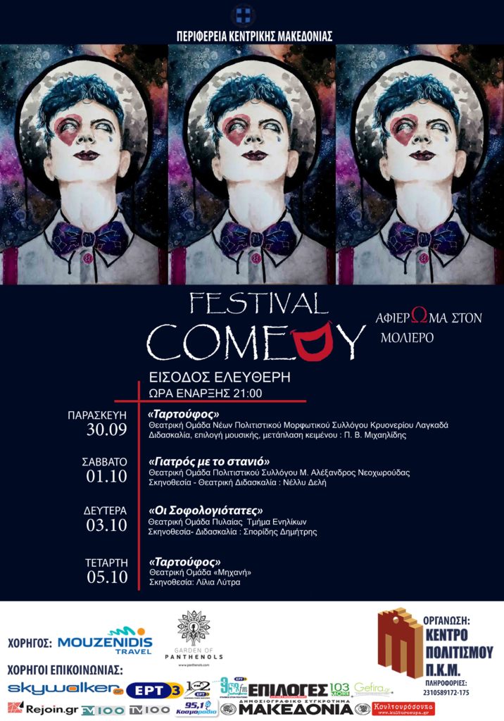 To Comedy Festival καθιερώθηκε σαν μια μεγάλη γιορτή για τους φίλους της κωμωδίας. Φέτος το φεστιβάλ είναι αφιερωμένο στον μεγάλο Γάλλο λογοτέχνη Μολιέρο ο οποίος και έφερε την κωμωδία σε ίση θέση με την τραγωδία και αυτό είναι το μεγαλύτερο κατόρθωμα του.