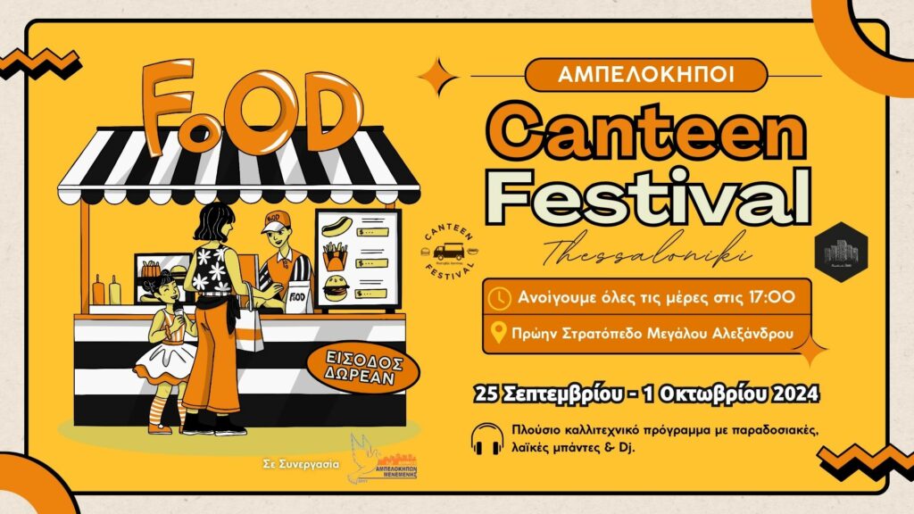 Από την Τετάρτη 25 Σεπτεμβρίου, μέχρι την Τρίτη 1 Οκτωβρίου, το Φεστιβάλ Καντίνας έρχεται να ξεσηκώσει το κοινό της Θεσσαλονίκης καθημερινά από τις 17:00!