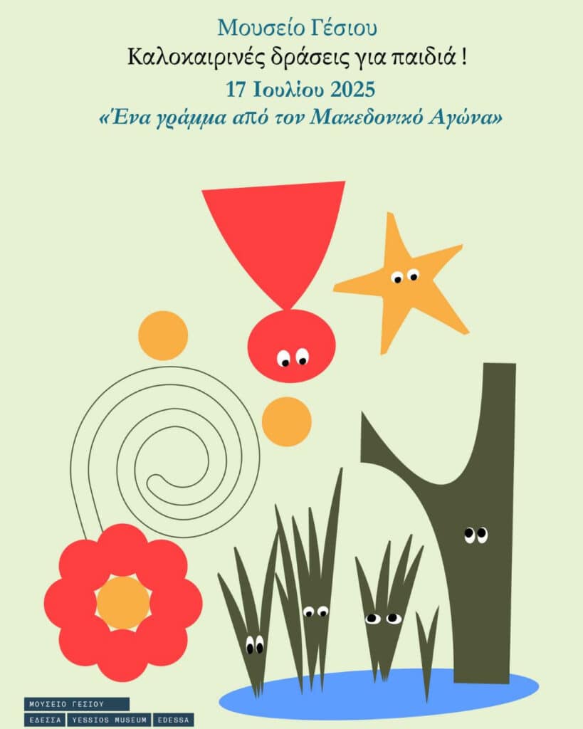Το Μουσείο Γέσιου, στο πλαίσιο της λειτουργίας του ως ενεργού πολιτιστικού και εκπαιδευτικού φορέα, διοργανώνει την Πέμπτη 17 Ιουλίου 2025 την θεματική εκπαιδευτική δράση «Γράμμα από τον Μακεδονικό Αγώνα», η οποία απευθύνεται σε παιδιά ηλικίας 7 έως 12 ετών.