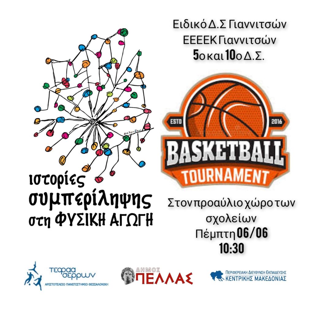 Στο πλαίσιο του ερευνητικού εκπαιδευτικού προγράμματος “Ιστορίες Συμπερίληψης”, θα πραγματοποιηθεί μίνι τουρνουά μπάσκετ στον προαύλιο χώρο του 5ου και του 10ου Δημοτικού Σχολείου Γιαννιτσών.