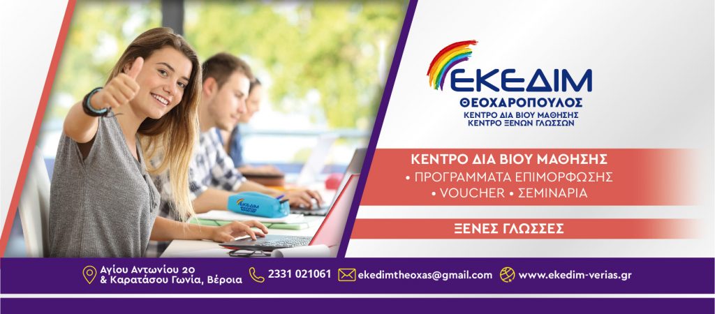 Το Κέντρο Δια Βίου Μάθησης Επιπέδου 2, ΕΚΕΔΙΜ ΘΕΟΧΑΡΟΠΟΥΛΟΣ, υλοποίει επιδοτούμενα ταχύρρυθμα τμήματα πληροφορικής, για απόκτηση πτυχίου αναγνωρισμένο από τον ΑΣΕΠ.