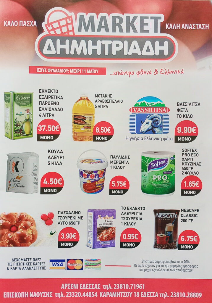 “ΜΑΡΚΕΤ ΔΗΜΗΤΡΙΑΔΗΣ” ΕΔΕΣΣΑ – ΑΡΣΕΝΙ – ΕΠΙΣΚΟΠΗ ~ ΠΑΣΧΑΛΙΝΟ ΦΥΛΛΑΔΙΟ ΠΡΟΣΦΟΡΩΝ