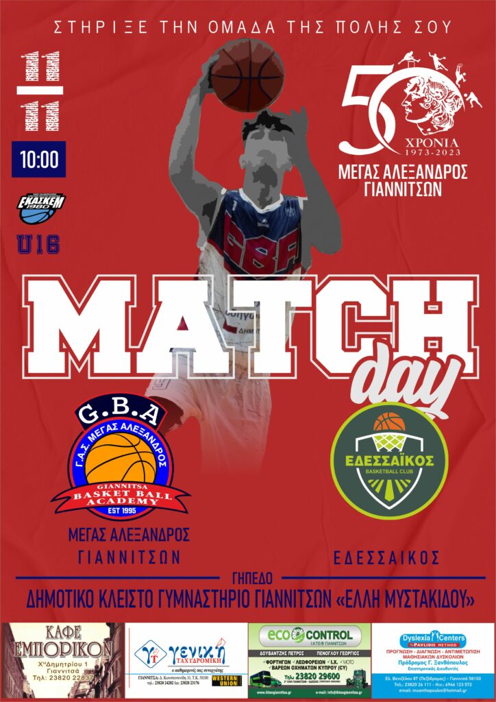 Το μεσημέρι της ίδιας μέρας στις 12:00 ο «Μέγας» θα ξανασυναντηθεί με την ομάδα του «Εδεσσαικου B.C.» με την οποία θα αναμετρηθεί αυτή την φορά στο Εφηβικό τμήμα στο κλειστό γυμναστήριο της Έδεσσας.