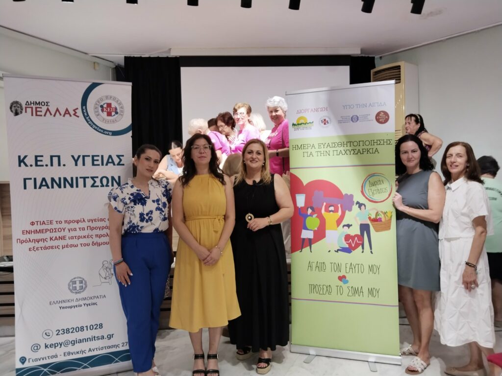 To Ελληνικό Διαδημοτικό Δίκτυο Υγιών Πόλεων, τα ΚΕΠ Υγείας και ο Δήμος Πέλλας πραγματοποίησαν με επιτυχία στη βόρεια αίθουσα του Πνευματικού Κέντρου Γιαννιτσών, Ημερίδα Ευαισθητοποίησης για την Παχυσαρκία, με τίτλο: «Αγαπώ τον εαυτό μου, προσέχω το σώμα μου».