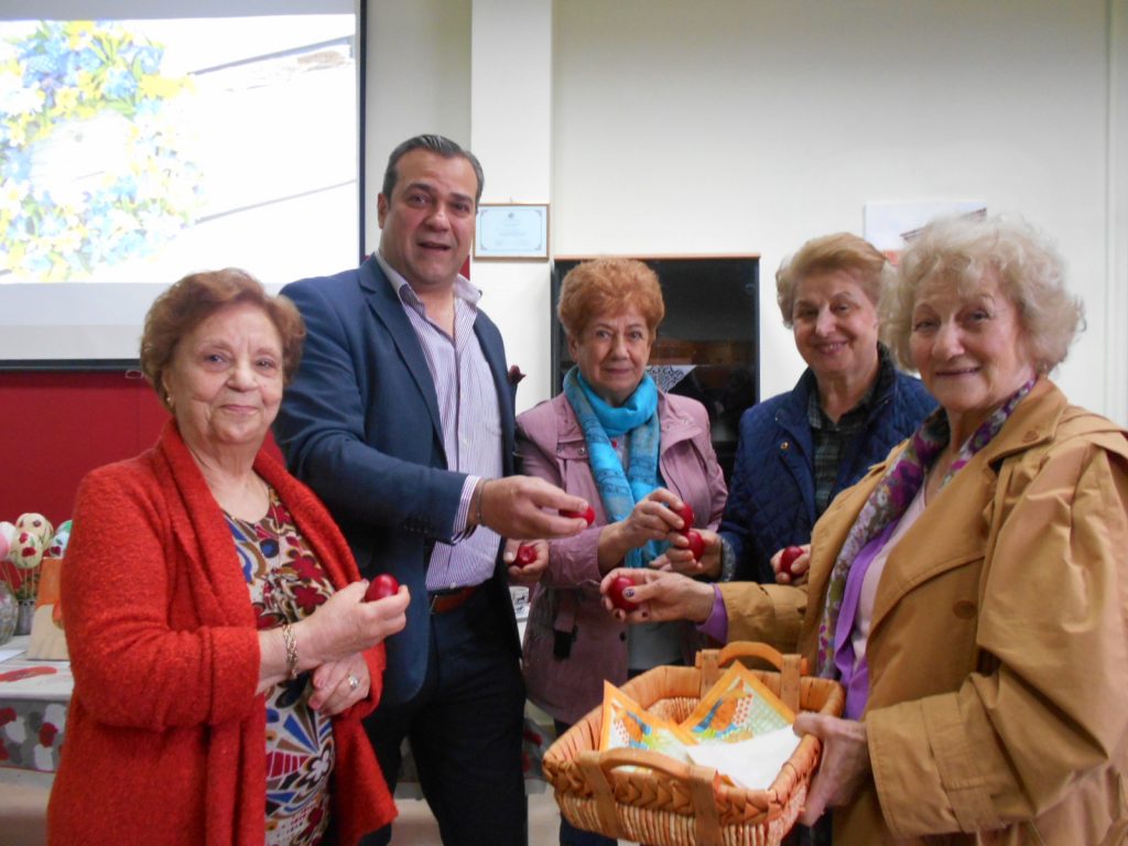Με θερμό καλωσόρισμα και κόκκινα αυγά υποδέχθηκε το ΚΑΠΗ του Δήμου Έδεσσας τον μήνα Μάιο μετά τις διακοπές του Πάσχα, ανταλλάσσοντας ευχές και «Χριστός ανέστη». Ευχάριστη ήταν η παρουσία του Προέδρου του «ΕΥ ΖΗΝ» κ. Δημήτρη Γιώγα που καλωσόρισε και αυτός με τη σειρά του τα ηλικιωμένα πρόσωπα που μαζεύτηκαν για την μηνιαία ομιλία της κοινωνικής λειτουργού κ. Σωτηρίας Φιλούκατζη με πρωτομαγιάτικο θέμα.