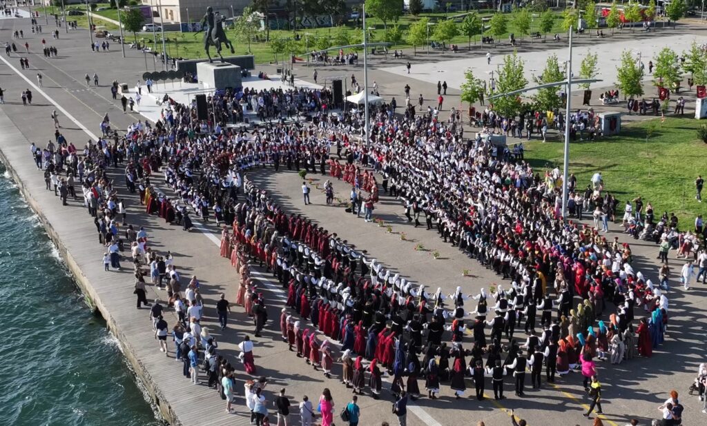 Εξήντα πολιτιστικοί σύλλογοι, με τα λάβαρά τους, και περίπου χίλιοι χορευτές με παραδοσιακές Μακεδονικές φορεσιές πλημύρισαν το κέντρο της Θεσσαλονίκης και υπό τους ήχους παραδοσιακής Μακεδονικής μουσικής χόρεψαν, όλοι μαζί, σε ομόκεντρους κύκλους, παραδοσιακούς Μακεδονικούς χορούς, από κάθε περιοχή της Μακεδονίας.