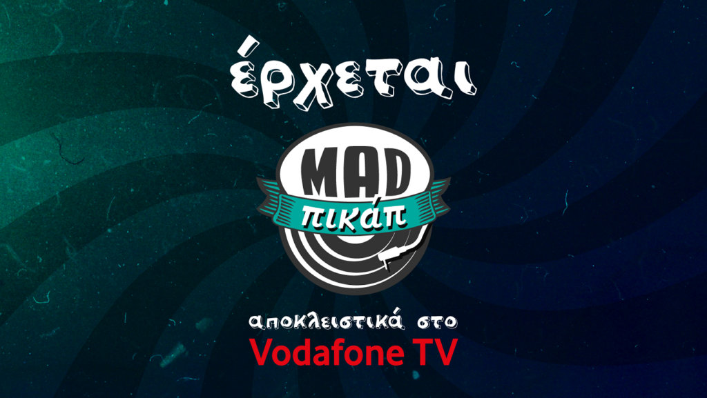 Στο μεταξύ, έρχεται αποκλειστικά στο Vodafone TV το MAD ΠΙΚΑΠ, ένα νέο pop up θεματικό μουσικό κανάλι που υπόσχεται στους συνδρομητές της υπηρεσίας και φανατικούς μουσικόφιλους να έχουν τη δυνατότητα να απολαμβάνουν τους αγαπημένους τους Έλληνες και ξένους καλλιτέχνες μέσα από επιλεγμένα mixers με πολύ αγαπημένα τραγούδια από το σήμερα και το χθες, με ποιοτική Ελληνική και International μουσική! Οι 8 μοναδικές ζώνες του Mad Πικάπ η κάθε μια με τον δικό της μοναδικό χαρακτήρα (Juke box, Σαν συναυλία, Κασετόφωνο, Rock Eντεχνο, Μπαλάντες των αισθήσεων, This is now, Golden acoustic, Timeless), σε αφήνουν να απολαύσεις τη μουσική δίχως όρια.