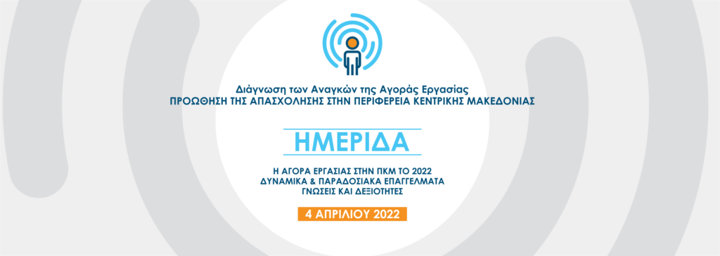 Νέα υβριδική ημερίδα με τίτλο ««Η αγορά εργασίας στην ΠΚΜ το 2022, Δυναμικά & Παραδοσιακά Επαγγέλματα: Γνώσεις και Δεξιότητες»,  τη Δευτέρα 4 Απριλίου 2022 στη Θεσσαλονίκη