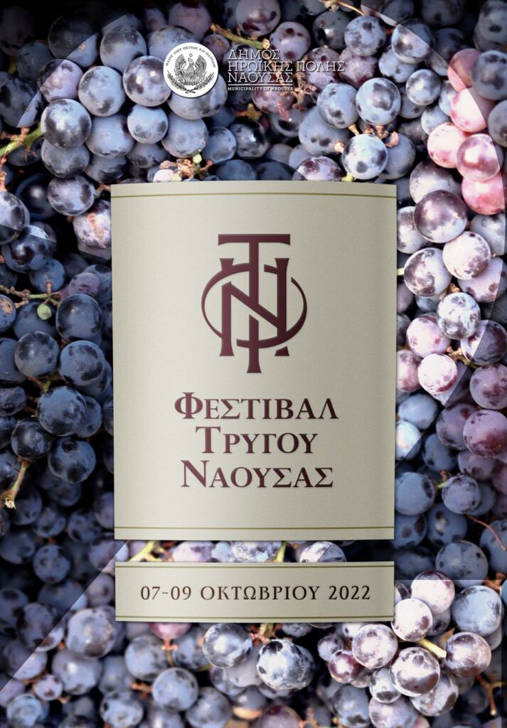 Ο Δήμος Ηρωικής Πόλης Νάουσας για δεύτερη συνεχή χρονιά διοργανώνει το Φεστιβάλ Τρύγου Νάουσας. Πολιτιστικές εκδηλώσεις, εικαστικές δράσεις στην πόλη και στα επισκέψιμα οινοποιεία, ξεναγήσεις, γευσιγνωσία οίνων συνθέτουν και φέτος το “μωσαϊκό” του Φεστιβάλ που θα πραγματοποιηθεί το διάστημα 7 Οκτωβρίου έως 9 Οκτωβρίου 2022.