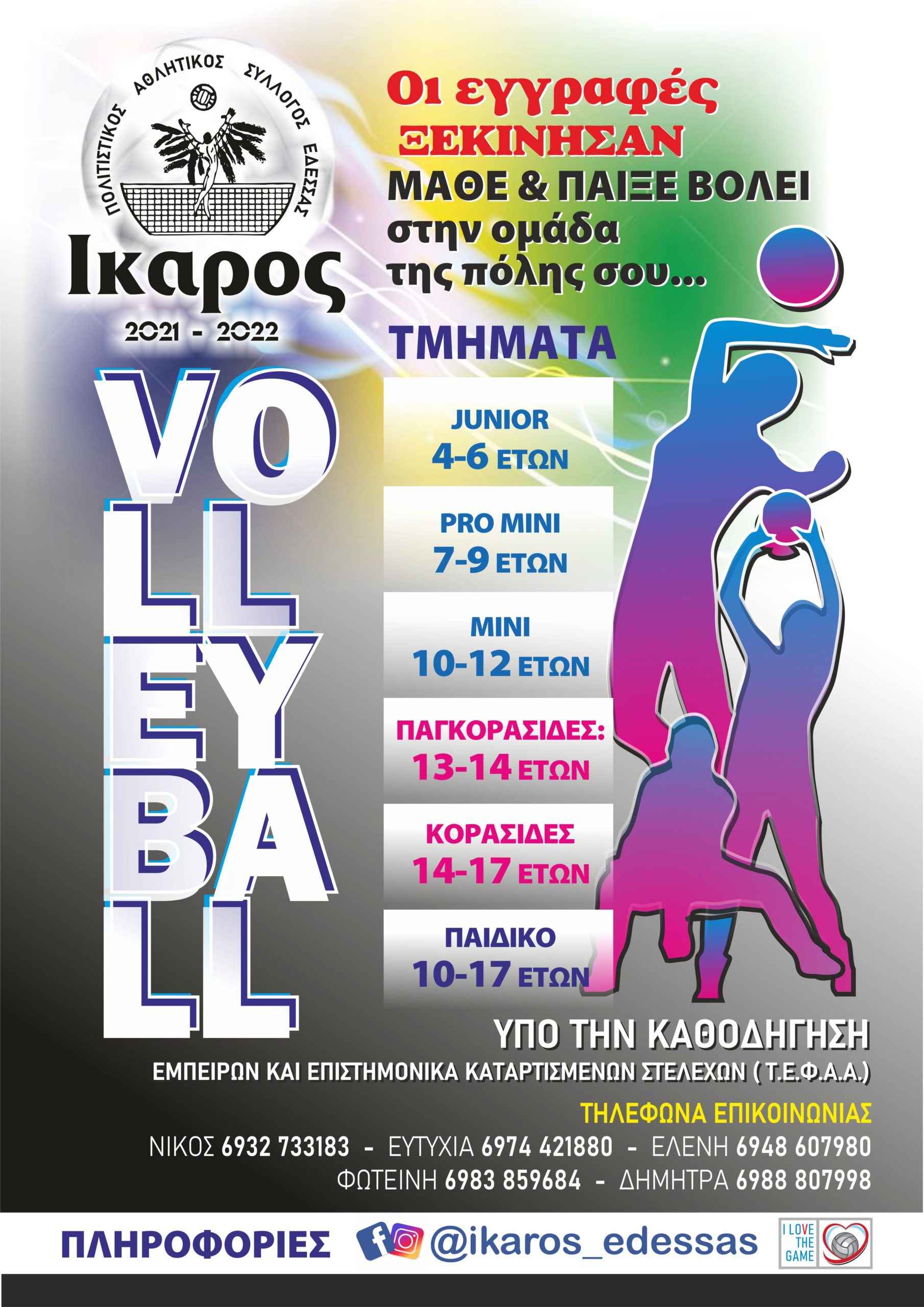Έλα στην ακαδημία βόλεϊ του Π.Α.Σ. ΙΚΑΡΟΥ ΕΔΕΣΣΑΣ