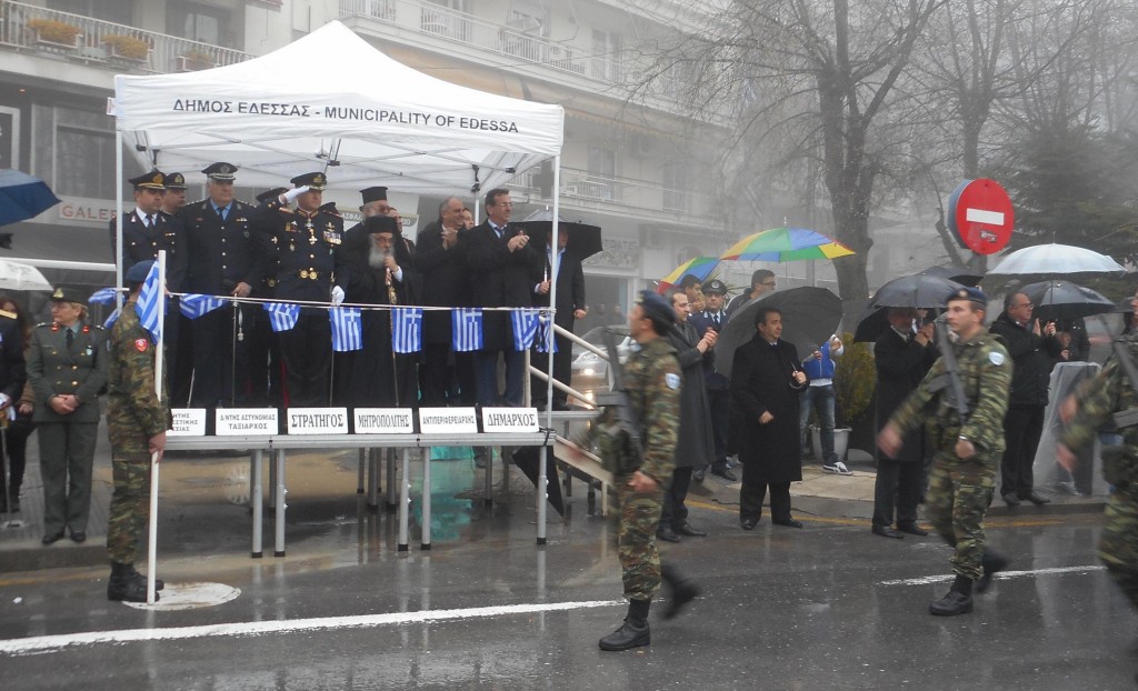 Παρά την έντονη βροχόπτωση, οι εκδηλώσεις της Εθνικής Επετείου της 25ης Μαρτίου 1821 στην Έδεσσα, έδρα της Π.Ε. Πέλλας, πραγματοποιήθηκαν με τη δέουσα επισημότητα και τη συμμετοχή πλήθους κόσμου.