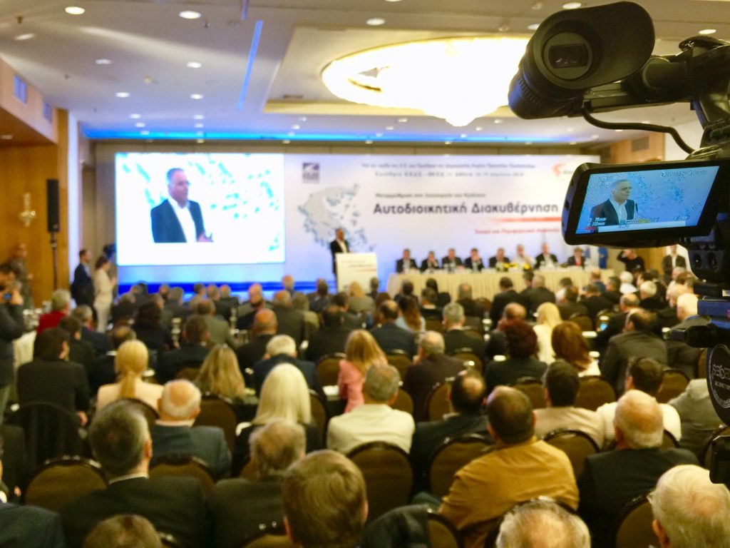 Τέλος, μία μεταρρύθμιση θέλει πόρους κι ενώ εγώ αναφέρθηκα για συγκεκριμένες πρωτοβουλίες και μέτρα, αυτά όλα προφανώς αθροιζόμενα, δεν μπορούν να υποκαταστήσουν τη μεγάλη ζημιά που έχει υποστεί η Αυτοδιοίκηση από την απώλεια των πόρων των τελευταίων ετών. Άρα λοιπόν μιλάμε για μία νέα μεταρρυθμιστική περίοδο για ένα πρώτο βήμα σε ένα νέο μεταρρυθμιστικό οδικό χάρτη, ο οποίος θα έρθει να απαντήσει σε ό,τι είναι ώριμο, σε ό,τι μπορεί να γίνει υπό τις παρούσες συνθήκες. Είναι μία ανοιχτή μεταρρυθμιστική πρόταση, για αυτό μιλήσαμε για τον «Κλεισθένη Ι». Ο αριθμός ένα δεν ήτανε απλά και μόνο για λόγους marketing, ήταν για λόγους ουσιαστικούς, που σας παραθέτω αυτή τη στιγμή. Νομίζω λοιπόν ότι εδώ πέρα, πάρα πολλά πράγματα μπορούμε να τα συμφωνήσουμε, σε πάρα πολλά πράγματα μπορούμε να έχουμε κοινές απόψεις και σε κάποια να διαφωνήσουμε βεβαίως.