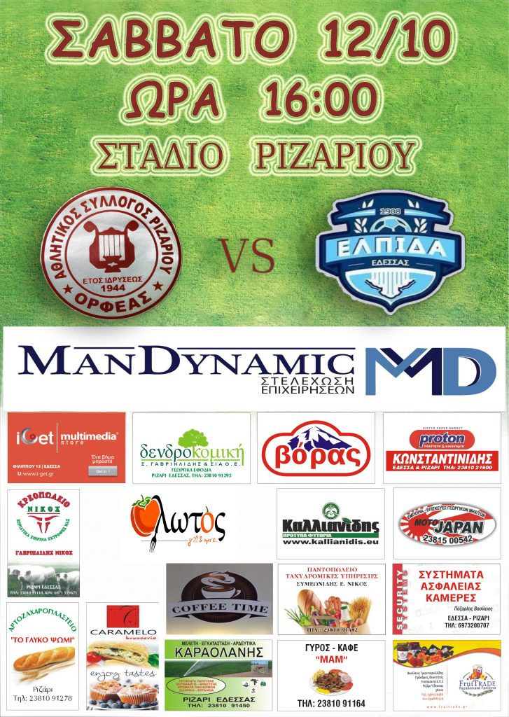 Ορφέας Ριζαρίου - Ελπίδα Έδεσσας το Σάββατο 12 Οκτώβρη