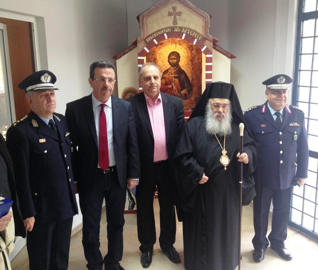 Ο Αντιπεριφερειάρχης Πέλλας κ. Θεόδωρος Θεοδωρίδης παραβρέθηκε στα εγκαίνια του Προσκυνηταρίου του Αγίου Αρτεμίου και του μουσείου Αστυνομικής ιστορίας της Αστυνομικής Διεύθυνσης Πέλλας που πραγματοποιήθηκαν σήμερα (10/3) στην Έδεσσα. Στην εκδήλωση παραβρέθηκαν επίσης ο Σεβασμιώτατος Μητροπολίτης Εδέσσης, Πέλλης και Αλμωπίας κ.κ. Ιωήλ, οι βουλευτές Πέλλας κκ. Δ. Σταμενίτης και Θ. Τζάκρη, οι Δήμαρχοι κκ. Δ. Γιάννου, Δ. Πασόης και Γ. Χοΐδης, ο Γενικός Αστυνομικός Διευθυντής Περιφέρειας Κεντρικής Μακεδονίας Υποστράτηγος Β. Χόνδρος, ο Αστυνομικός Διευθυντής Πέλλας κ. Π. Κολόμβος, ο Αστυνομικός Διευθυντής Κοζάνης Ταξίαρχος Γεώργιος Καραϊτσης, ο Αστυνομικός Διευθυντής Φλώρινας Ταξίαρχος Π. Λάτμος, ο Αστυνομικός Διευθυντής Κιλκίς κ. Θ. Σάνδρος, ο Επιτελάρχης της ΙΙης Μ/Κ Μεραρχίας Συνταγματάρχης Π. Χατζηγεωργίου, ο Διοικητής του Τμήματος Ασφαλείας Γιαννιτσών κ. Π. Περδικάτσης, ο Αστυνομικός Υποδιευθυντής Γιαννιτσών κ. Γ. Παπαπροδρόμου, καθώς και στελέχη της Αστυνομικής Διεύθυνσης Πέλλας.