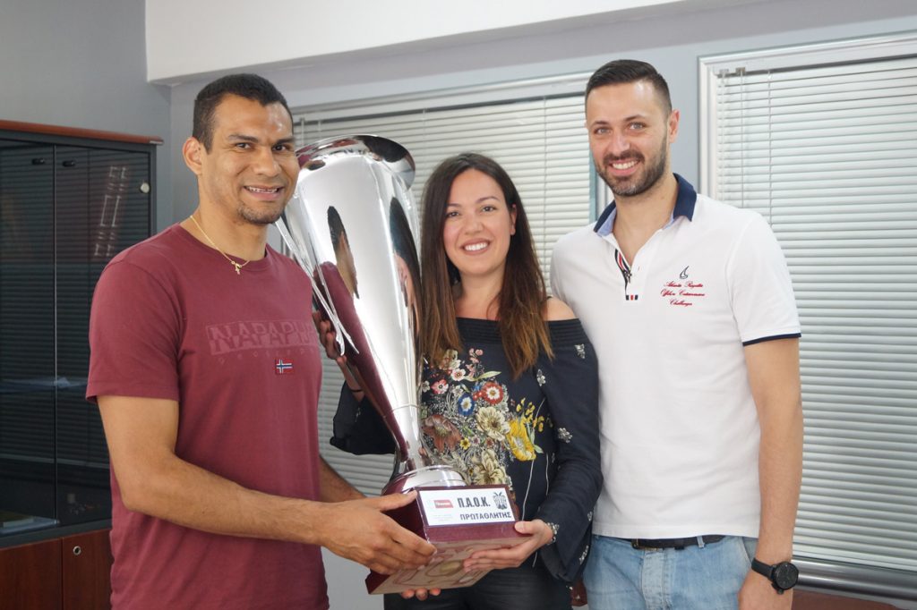 Ο αρχηγός της πρωταθλήτριας ομάδας βόλεϊ του ΠΑΟΚ, Γιάννης Παντακίδης και ο συμπαίκτης του, Χάρι Γκόμεζ, επισκέφτηκαν τα ΙΕΚ ΑΛΦΑ Θεσσαλονίκης, έχοντας μαζί τους και το βαρύτιμο τρόπαιο. Συνομίλησαν με τους σπουδαστές Αθλητικής Δημοσιογραφίας, Διαιτολογίας και Προπονητικής για την διατροφή και το προπονητικό πρόγραμμα που απαιτεί ο πρωταθλητισμός, ενώ απάντησαν σε όλες τις ερωτήσεις τους.