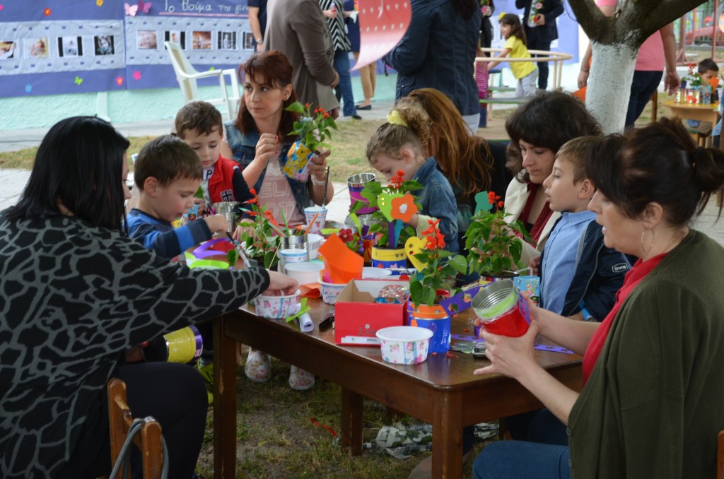 Στα καρεκλάκια γύρω από τα τραπεζάκια, τα οποία τοποθετήθηκαν σε διάφορα σημεία, κάθισαν παιδάκια και μητέρες που με την καθοδήγηση του προσωπικού απασχολήθηκαν δημιουργικά με ζωγραφιές, φύτεμα λουλουδιών κι άλλες δραστηριότητες.