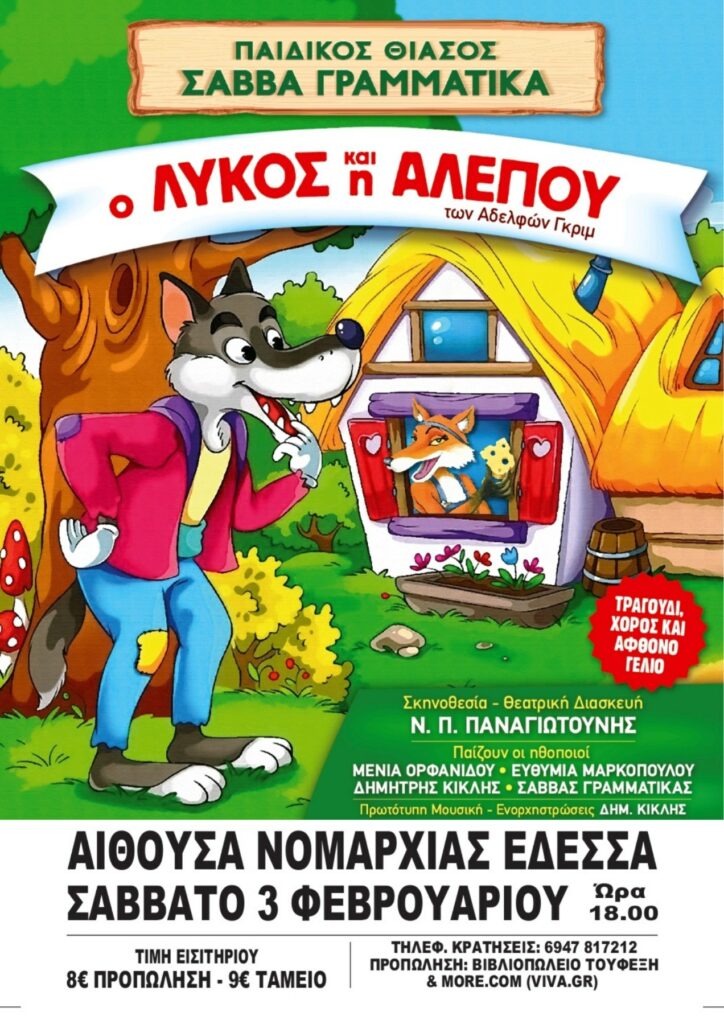 Προπώληση στο βιβλιοπωλείο Τουφεξή και στο https://www.more.com/theater/children/o-lykos-kai-i-alepou/