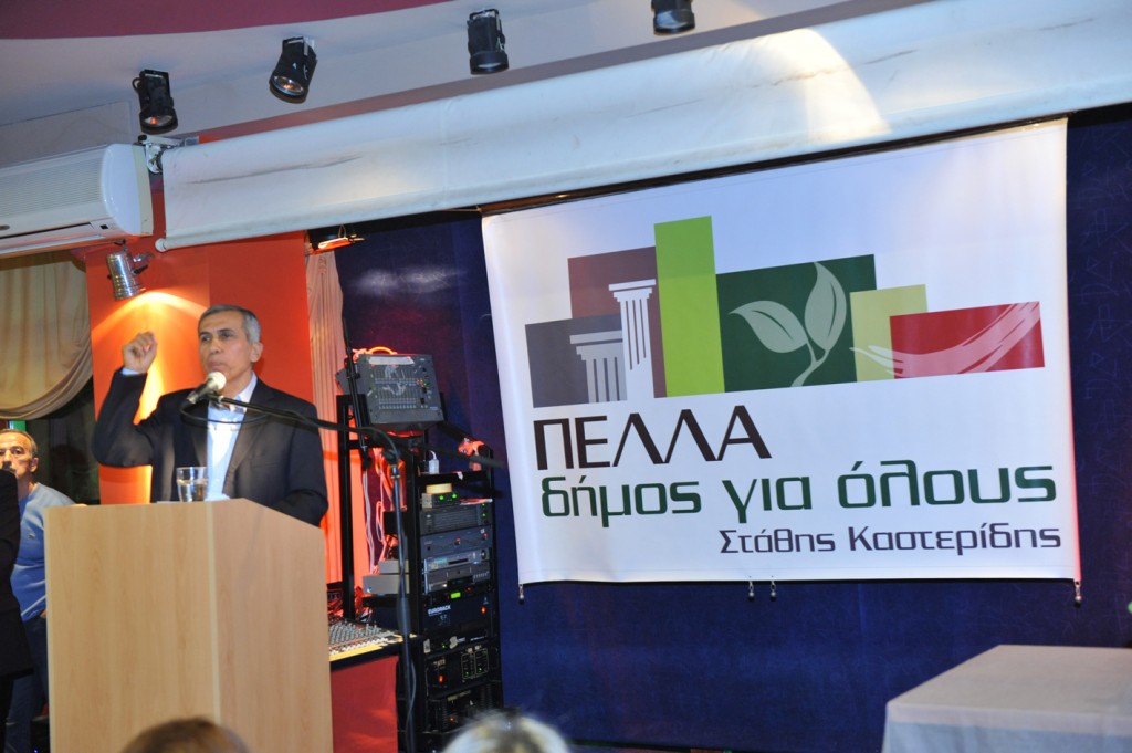 Αφού ευχαρίστησε τους εκατοντάδες φίλους που παραβρέθηκαν στην εκδήλωση, αναφέρθηκε στα βασικά προβλήματα του δήμου Πέλλας και παρουσίασε τους άξονες του προγράμματός του. Μίλησε μεταξύ άλλων για κοινωνική ευαισθησία, σύγχρονο δήμο, συνεργασίες και δραστηριοποίηση στις τοπικές κοινότητες και τόνισε «ένας δήμος απαλλαγμένος από τις εξαρτήσεις της κεντρικής διοίκησης, οικονομικά αυτοδύναμος και πραγματικά νοικοκυρεμένος είναι ένας δήμος ισχυρός και ικανός να σταθεί στο πλευρό των πολιτών, να βελτιώσει την καθημερινότητα και να ικανοποιήσει τις ανάγκες τους. Και συλλογικά μαζί με τους δημότες και μαζί με όλους τους φορείς και συλλόγους, να χαράξει μία ρεαλιστική πορεία ανάπτυξης. Αυτός είναι ο στόχος μας. Σήμερα, είναι κοινή διαπίστωση ότι ο Δήμος μας διοικείται με βάση ένα μοντέλο, που μυρίζει ναφθαλίνη, ένα μοντέλο «αρχηγοκεντρικό».