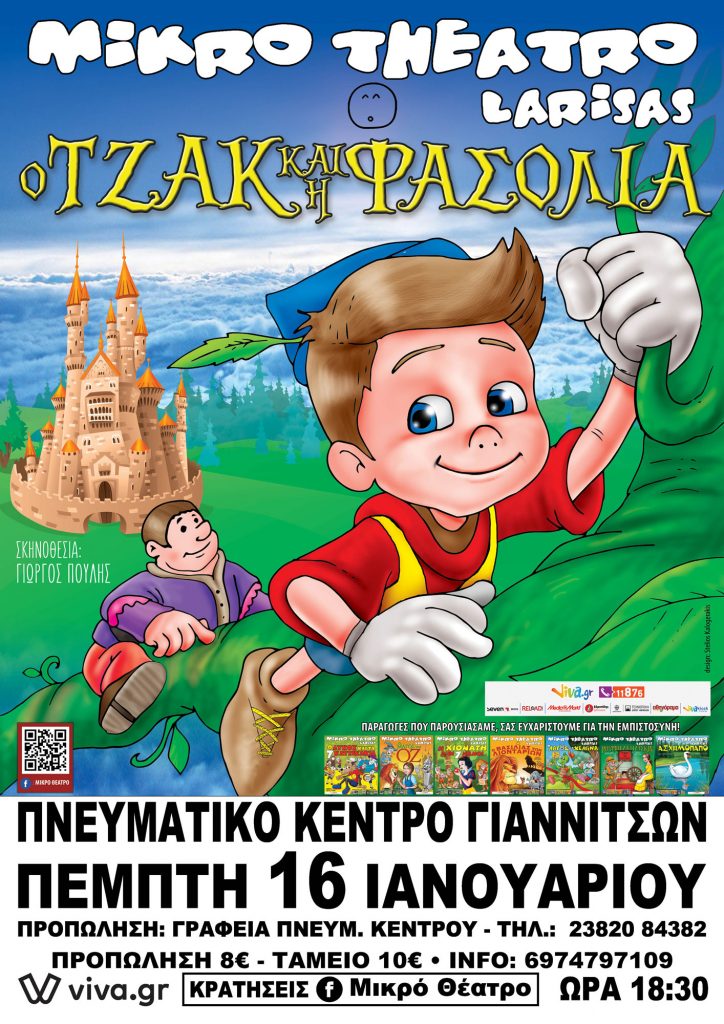 Ο Τζακ! Ένας ονειροπόλος νέος που ζει με την μητέρα του και την αγαπημένη του αγελάδα. Τα πράγματα ξαφνικά δυσκολεύουν πολύ και δυστυχώς ως μόνη λύση αναγκάζεται να πουλήσει την αγελάδα του. Το αντάλλαγμά του? Πέντε μαγικά φασόλια από έναν πολύ περίεργο άνθρωπο που συναντά τυχαία στον δρόμο για την αγορά. Μια τεράστια φασολιά που φυτρώνει έξω από το σπίτι του & τον οδηγεί στο παλάτι του γίγαντα. Μια μεγάλη περιπέτεια ξεκινάει λοιπόν για τον Τζακ όταν εκείνος σκαρφαλώνει στην φασολιά. Θα έρθουν καλύτερες μέρες για την οικογένειά του με πράγματα που δεν ήταν δικά τους? Ή μήπως όχι? θα δικαιωθεί ο Τζακ για τις επιλογές του? Θα τιμωρηθεί ο γίγαντας για όλα όσα έχει προκαλέσει στην πόλη; Τι είναι τελικά σωστό να κάνουμε όταν ο πειρασμός είναι μεγάλος και μοιάζει σαν εύκολη λύση?