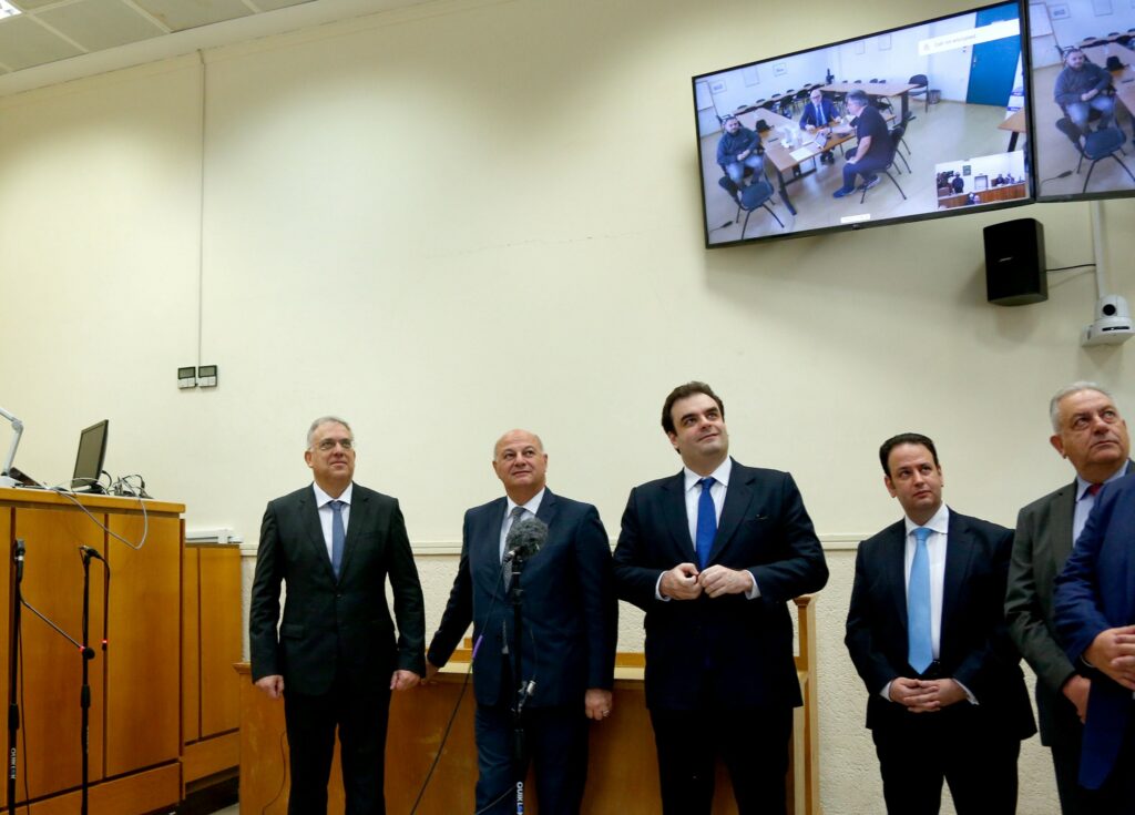 Το εμβληματικό έργο «Ολοκληρωμένες Υπηρεσίες τηλεδιάσκεψης σε δικαστήρια και σωφρονιστικά καταστήματα» παρουσίασαν σήμερα στο Πρωτοδικείο Αθηνών ο Υπουργός Δικαιοσύνης Κώστας Τσιάρας, ο Υπουργός Επικρατείας και Ψηφιακής Διακυβέρνησης Κυριάκος Πιερρακάκης και ο Υπουργός Προστασίας του Πολίτη Τάκης Θεοδωρικάκος.