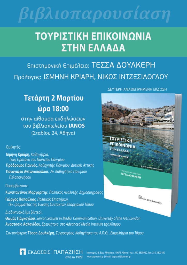 Link εκδήλωσης: https://www.ianos.gr/events/touristikh_epikoinwnia_-_a_tomos_-_deuterh_ana%CE%B8ewrhmenh_%CE%88kdosh_-_ekdoseis_papazhsh_-_2-3/
