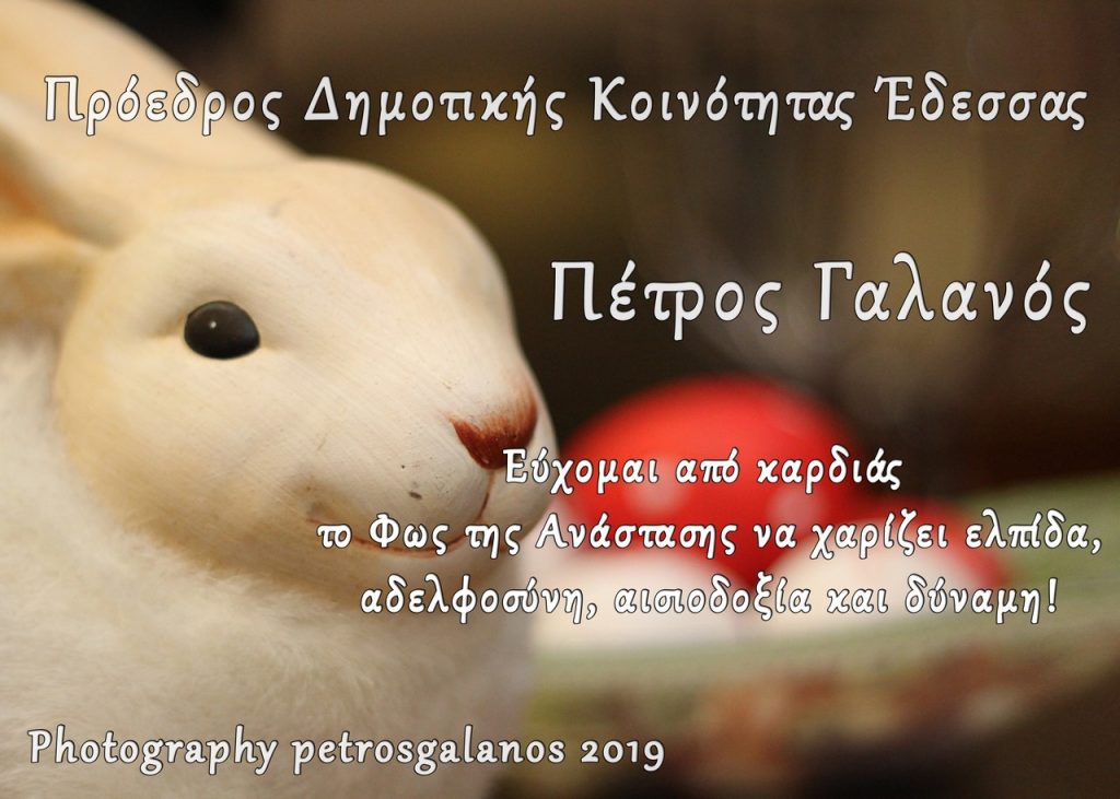 Πασχαλινές ευχές από τον Πέτρο Γαλανό Πρόεδρο της Δημοτικής Κοινότητας Έδεσσας