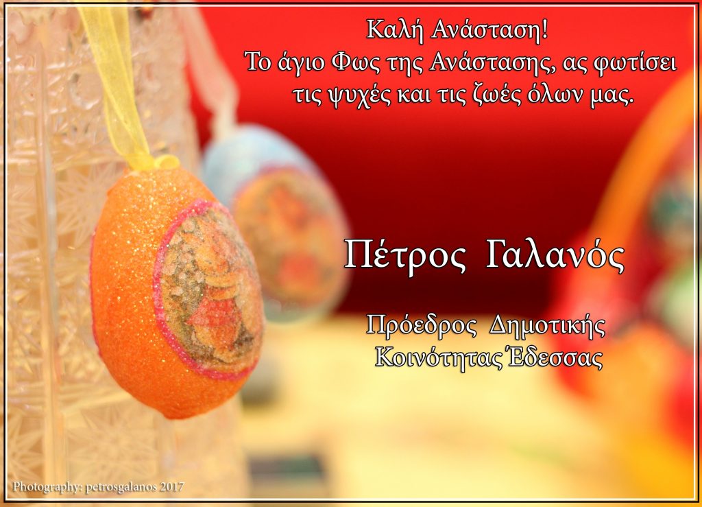 Πασχαλινές ευχές από τον Πρόεδρο της Δημοτικής Κοινότητας Έδεσσας Πέτρο Γαλανό