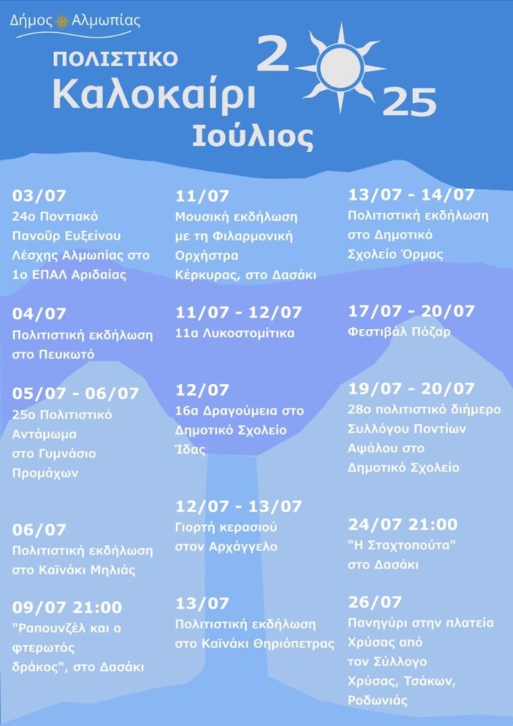 ΠΟΛΙΤΙΣΤΙΚΕΣ ΕΚΔΗΛΩΣΕΙΣ ΣΤΟΝ ΔΗΜΟ ΑΛΜΩΠΙΑΣ ΙΟΥΛΙΟΥ 2025