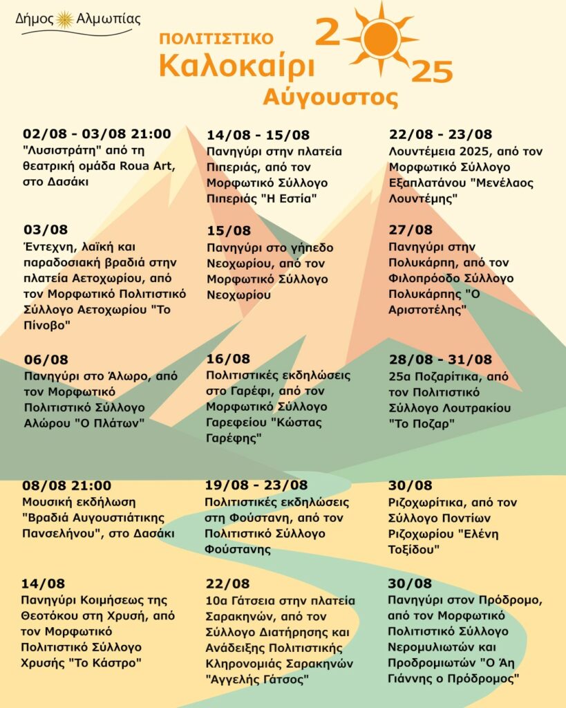 ΠΟΛΙΤΙΣΤΙΚΕΣ ΕΚΔΗΛΩΣΕΙΣ ΣΤΟΝ ΔΗΜΟ ΑΛΜΩΠΙΑΣ ΤΟΝ ΑΥΓΟΥΣΤΟ