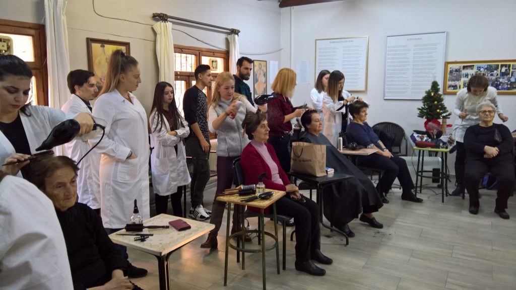 Ούτε μία, ούτε δύο, αλλά τρεις ειδικότητες “επιστράτευσε” το Δημόσιο ΙΕΚ Έδεσσας για να στείλει το χριστουγεννιάτικο μήνυμα αγάπης του στους ηλικιωμένους του ΚΑΠΗ Σκύδρας. Για δεύτερη συνεχή χρονιά, αποδεχόμενο την πρόταση των φιλόξενων υπευθύνων του ΚΑΠΗ Σκύδρας, το ΔΙΕΚ Έδεσσας αποφάσισε φέτος, να καλλωπίσει τους ηλικιωμένους με τους ειδικευόμενους της Κομμωτικής και Αισθητικής, αλλά και να τους γλυκάνει με τις υπέροχες λιχουδιές που ετοίμασαν οι Ζαχαροπλάστες του.