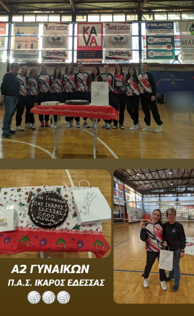 H ομάδα βόλεϊ Γυναικών ΠΑΣ Ίκαρος Έδεσσας αγωνίστηκε στο ΔΑΚ Έδεσσας με την ομάδα της Νέας Γενεάς για το πρωτάθλημα της Α2 Εθνικής κατηγορίας. Πριν την έναρξη του αγώνα έκοψε την πρωτοχρονιάτικη βασιλόπιτα και φέτος η γυναικεία ομάδα του Ίκαρου Έδεσσας, στο φυσικό της χώρο, που είναι το γήπεδο. Η τυχερή που έτυχε το φλουρί και κέρδισε το δώρο ήταν η πασσαδώρος Ιωαννίδου Μαρία.