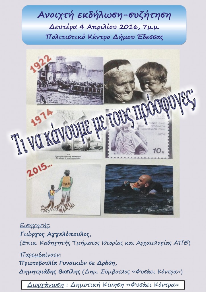 Απριλίου 2016, στις 7μ.μ στο Πολιτιστικό Κέντρο του Δήμου Έδεσσας