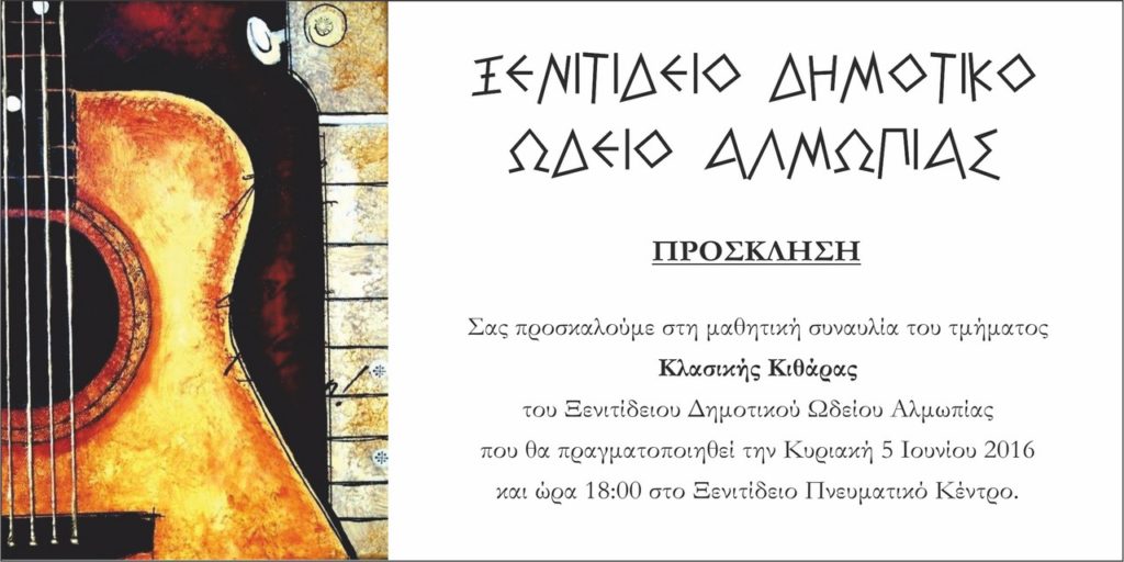 Πρόσκληση Μαθητικής συναυλίας στο Ξενιτίδειο Δημοτικό Ωδείο Αλμωπίας
