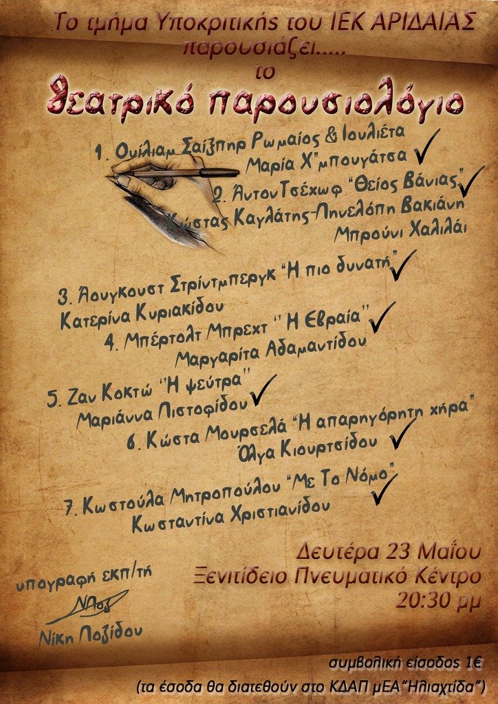 Το ΙΕΚ ΑΡΙΔΑΙΑΣ και το Τμήμα Υποκριτικής Τέχνης σας