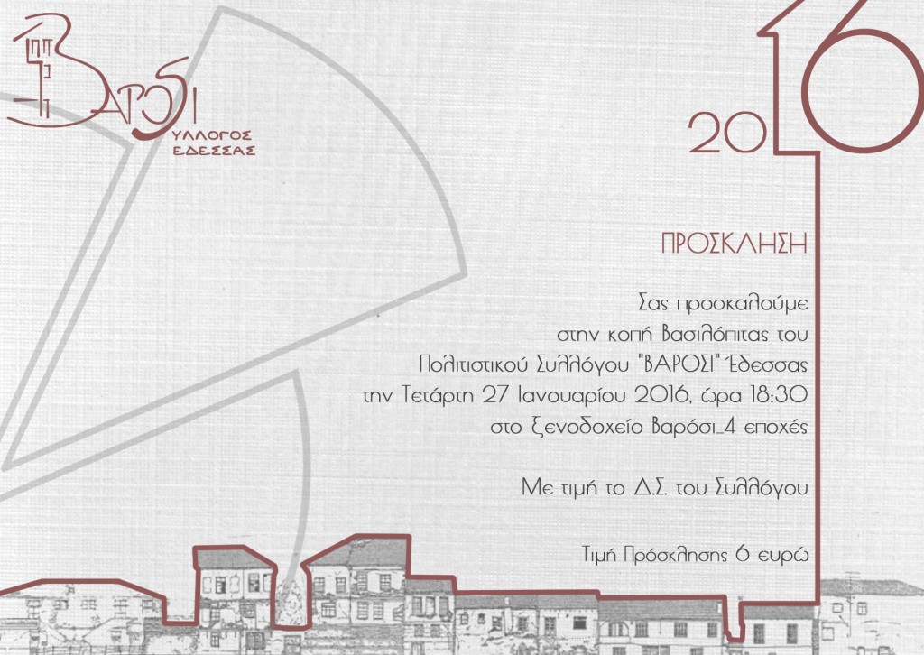 Σήμερα στις 18:30 η κοπή βασιλόπιτας του Πολιτιστικού Συλλόγου “Βαρόσι”
