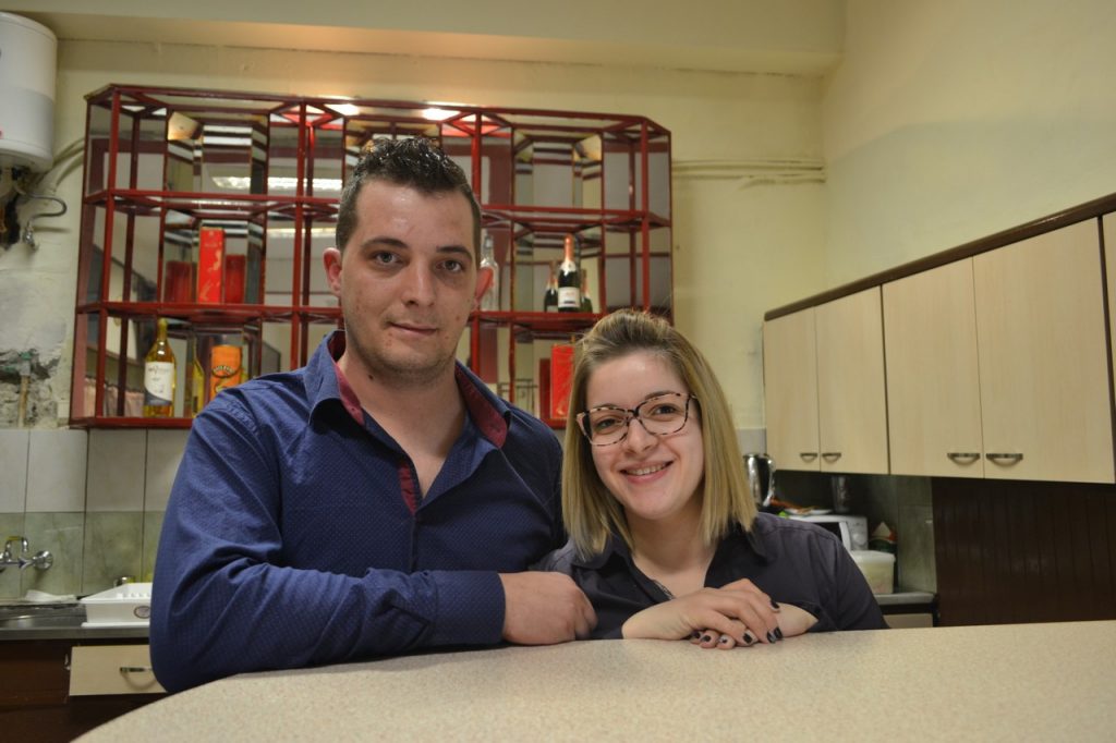 Δεν έχασα την ευκαιρία και κατευθύνθηκα στο σημείο του όμορφου ακούσματος. Βλέπω ένα απλό και καλαίσθητο καφεζυθεστιατόριον παραδοσιακό με μια υπέροχη αυλή να ψήνουν νέοι από το χωριό κρεατικά. Μόλις είχε ανοίξει και άδραξα την ευκαιρία να γνωρίσω τους ιδιοκτήτες Δημήτρη και Μορφούλα Τσόπα, δύο φιλόξενοι άνθρωποι με ανοιχτή καρδιά.