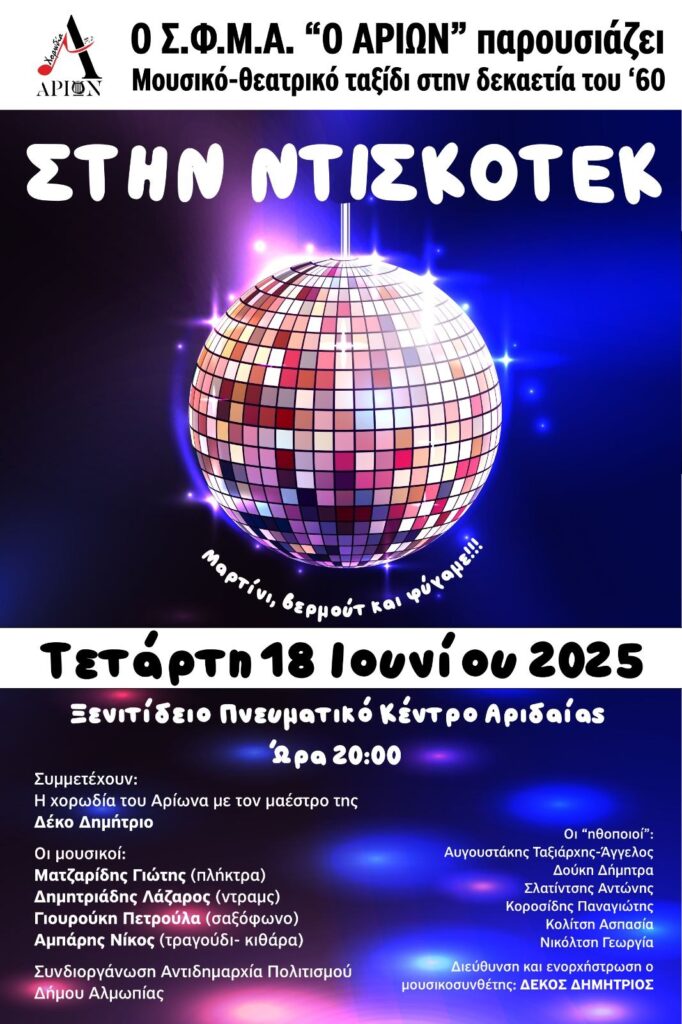 ΣΤΗΝ ΝΤΙΣΚΟΤΕΚ – Μουσικοθεατρικό ταξίδι στην δεκαετία του ’60 από τον Σ.Φ.Μ.Α “Ο ΑΡΙΩΝ”
