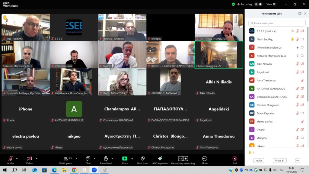 Πραγματοποιήθηκε την Τετάρτη 19 Φεβρουαρίου η 1η συνεδρίαση της Ολομέλειας Προέδρων Ομοσπονδιών της ΕΣΕΕ, στο πλαίσιο της απόφασης του Προέδρου κ. Σταύρου Καφούνη για έμπρακτη ενίσχυση του ρόλου των μελών της Συνομοσπονδίας στην παραγωγή θέσεων και στην τεκμηρίωση των προτάσεων της προς την Πολιτεία.