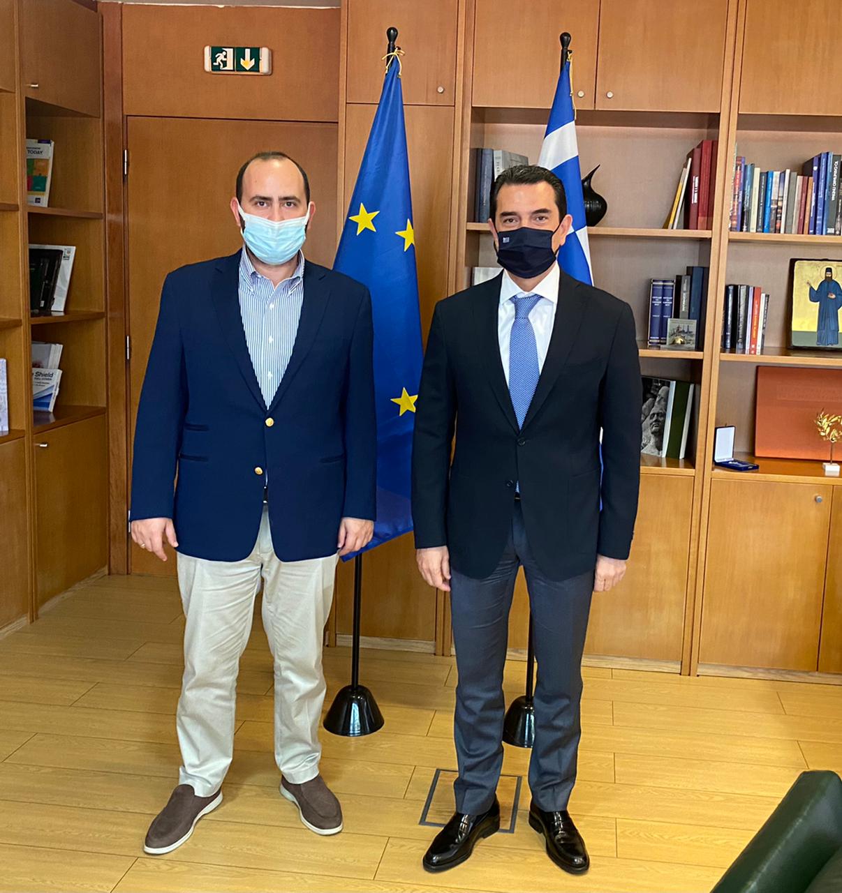 Ο Βουλευτής Πέλλας της Νέας Δημοκρατίας Λάκης Βασιλειάδης πραγματοποίησε σήμερα συνάντηση εργασίας με τον Υπουργό Περιβάλλοντος & Ενέργειας κ. Κ. Σκρέκα, με τον οποίο και συζήτησαν για σειρά θεμάτων του χαρτοφυλακίου του, με προεξέχον αυτό της αδειοδότησης νέων φωτοβολταϊκών σταθμών για σύνδεση με το δίκτυο του ΔΕΔΔΗΕ.
