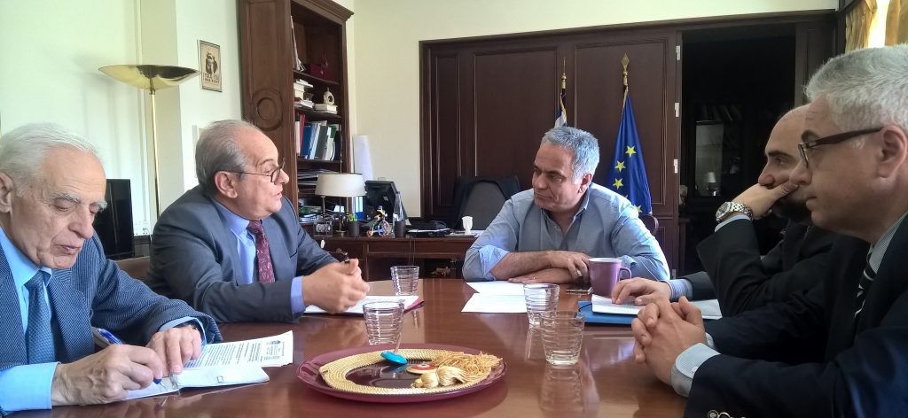 Ο Υπουργός Εσωτερικών, Πάνος Σκουρλέτης, συναντήθηκε σήμερα, Πέμπτη 19 Απριλίου 2018, με τον Πρόεδρο της Πανελλήνιας Ομοσπονδίας Ιδιοκτητών Ακινήτων, Στράτο Παραδιά, επικεφαλής αντιπροσωπείας της Ομοσπονδίας. Στη συνάντηση συμμετείχε επίσης, ο Διευθυντής του Γραφείου Υπουργού, Δημοσθένης Παπασταμόπουλος.