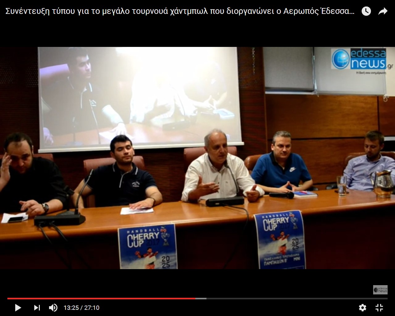 Κοινή συνέντευξη τύπου παραχώρησαν εχθές το πρωί ο προπονητής του Αερωπού Έδεσσας Γιάννης Πιλαλίδης, ο Δήμαρχος Έδεσσας Γιάννου Δημήτρης, ο Αντιδήμαρχος Αθλητισμού & Νεολαίας Δήμου Αλμωπίας Γιώργος Χατζηγιαννίδης, ο γνωστός επιχειρηματίας της Έδεσσας που βοηθάει με την παρουσία του τον αθλητισμό κος Μαρίνος καθώς και ο Αντιδήμαρχος Αθλητισμού Αναστάσιος Δίου με αφορμή τη διεξαγωγή του Πανελλήνιου Πρωταθλήματος Χάντμπολ Παμπαίδων Β΄ και ΜΙΝΙ, cherry cup 2017 που συνδιοργανώνουν οι Δήμοι Έδεσσας και Αλμωπίας, από 20 έως 25 Ιουνίου στα Δημοτικά Κέντρα Αθλητισμού της Έδεσσας και της Αριδαίας.