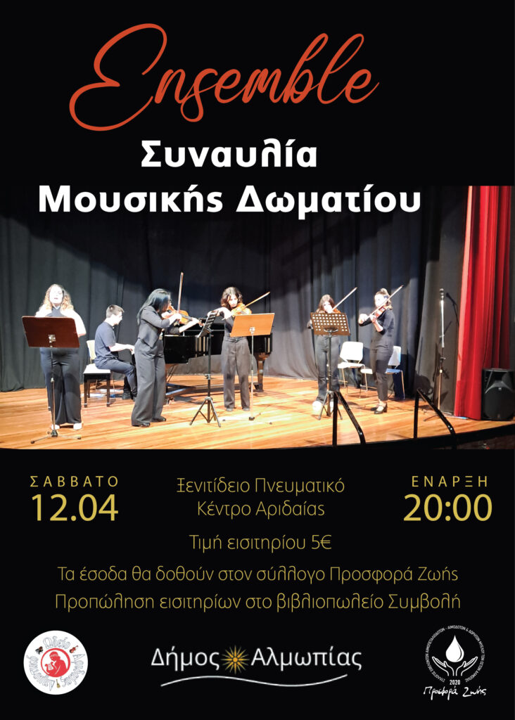Συναυλία Μουσικής Δωματίου. Το Σάββατο 12 Απριλίου 2025, στο Ξενιτίδειο Πνευματικό Κέντρο Αριδαίας, στις 20.00.