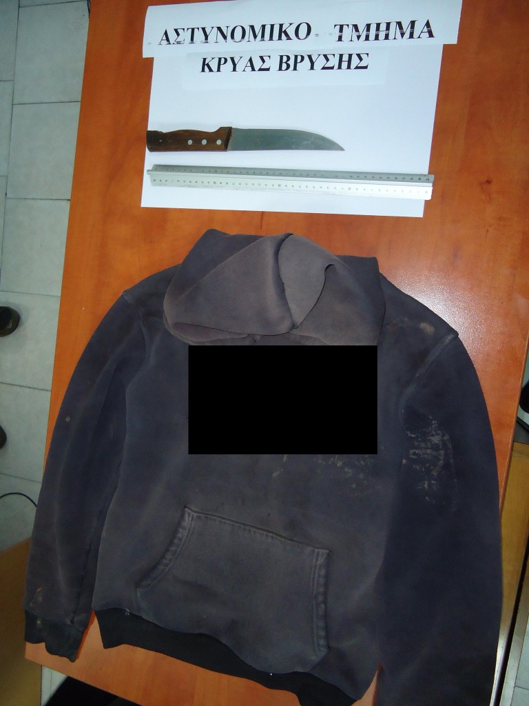 Το μαχαίρι εντοπίστηκε σε χώρο που το είχε απορρίψει και κατασχέθηκε, ενώ οι έρευνες συνεχίζονται προκειμένου να διαπιστωθεί η τυχόν εμπλοκή του και σε άλλες παρόμοιες αξιόποινες πράξεις.