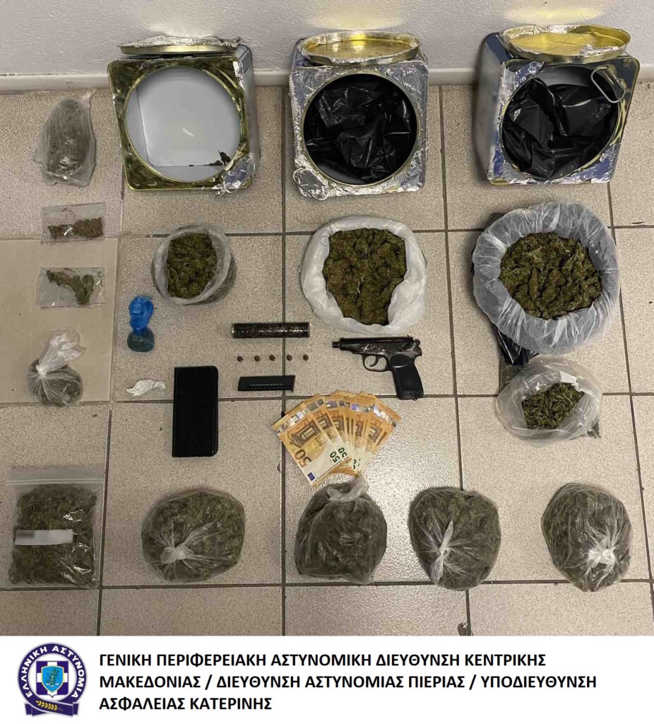 Συνελήφθη χθες (17 Νοεμβρίου) το πρωί σε περιοχή της Πιερίας, από αστυνομικούς της Υποδιεύθυνσης Ασφάλειας Κατερίνης, ημεδαπός άνδρας, για διακίνηση ναρκωτικών και παράνομη οπλοκατοχή.