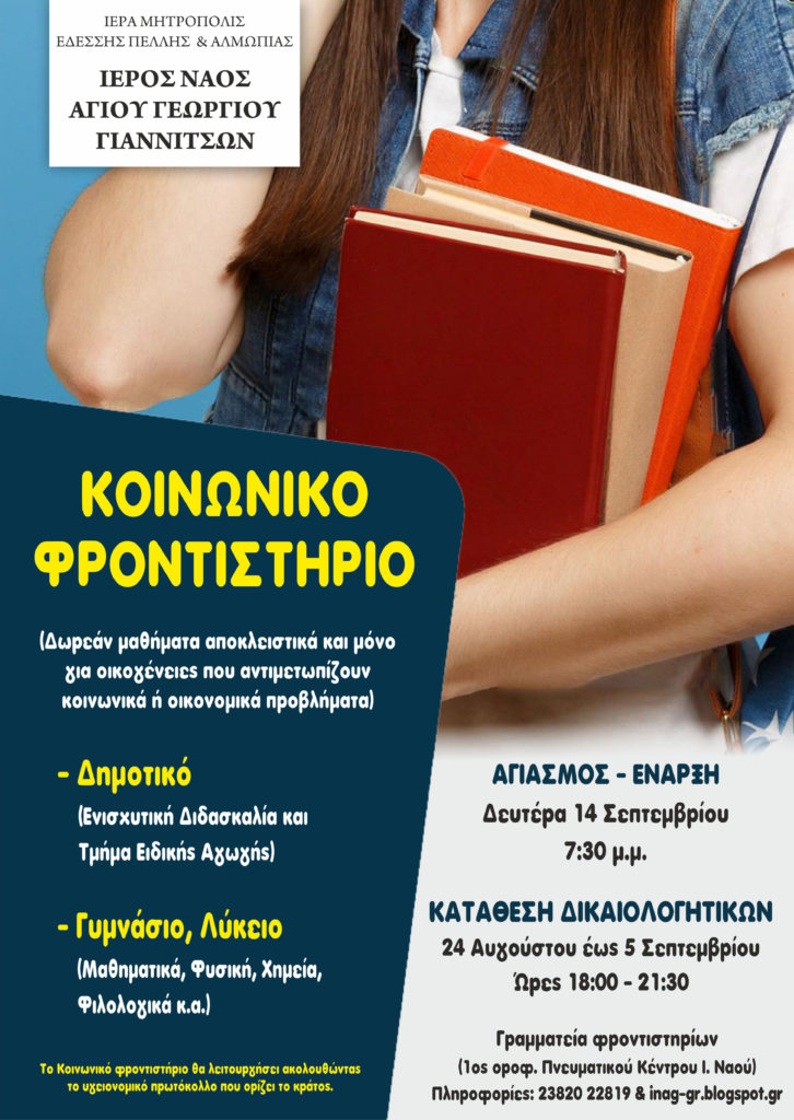 Το Κοινωνικό Φροντιστήριο θα λειτουργήσει ακολουθώντας το υγειονομικό πρωτόκολλο που ορίζει το κράτος.