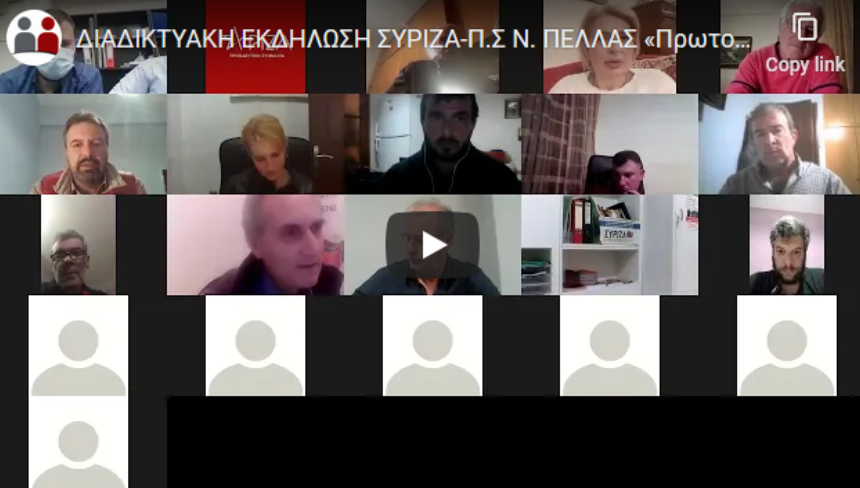 Η Νομαρχιακή Επιτροπή του ΣΥΡΙΖΑ-Προοδευτική Συμμαχία Ν.Πέλλας πραγματοποίησε την Τετάρτη 2 Δεκεμβρίου διαδικτυακή εκδήλωση με θέμα «Πρωτογενής Τομέας και Πανδημία».