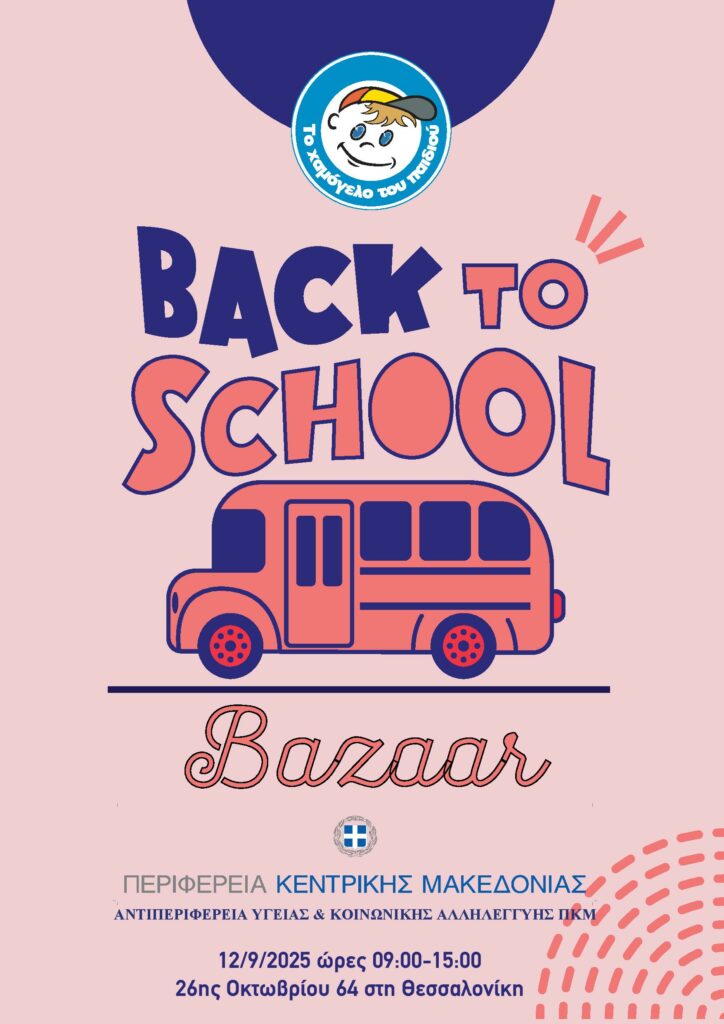 Με αφορμή την έναρξη της σχολικής χρονιάς, η Αντιπεριφέρεια Υγείας και Κοινωνικής Αλληλεγγύης της Περιφέρειας Κεντρικής Μακεδονίας φιλοξενεί bazaar σχολικών ειδών του Οργανισμού “Το Χαμόγελο του Παιδιού”, με σκοπό να συνδράμει το έργο του.